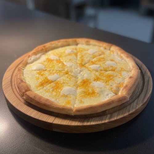 Фирменный белый соус,сырный микс,пармезан,сыр Чеддер, сыр Дор Блю